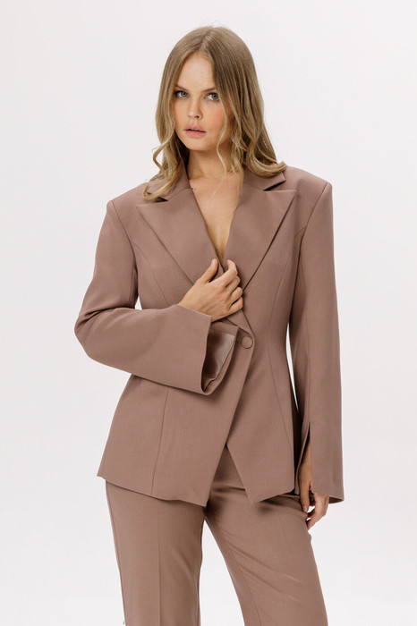 Приталенный жакет с разрезами по низу рукавов (приобрести брюки с фото можно по арт. 6341).
