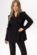 Детали: полуприлегающий силуэт, рельефные швы, пиджачный воротник, функциональные карманы, втачные длинные рукава, двубортная застежка на петли и пуговицы, спинка со шлицей, жакет на подкладке