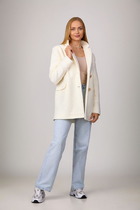 Стильный жакет полуприлегающего силуэта, выполнен из костюмной ткани. Смещенная застежка на петлю и пуговицу. Воротник пиджачного типа с отложными лацканами, край борта скругленный по низу жакета. Спереди обработаны прорезные карманы в рамку с клапанами. Рукава втачные, двухшовные со шлицами с застежкой на петли и пуговицы. Спинка с рельефами и средним швом. Жакет на подкладке.