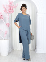 Полотно из хлопка с добавлением полиэстера позволяет джемперу и брюкам отлично тянуться, а плотная вязка сохраняет форму трикотажного костюма при частых стирках.