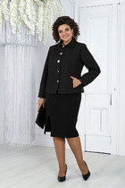 Модель Анфиса, рост 170 см, параметры 88-67-97 см. На ней костюм с юбкой размера 42-46.