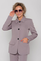 Жилет полуприлегающего силуэта. V-образная горловина с отложным воротничком переходит в запах. Низ ассиметричный, полочка удлиненна. Спинка со среднем швом.