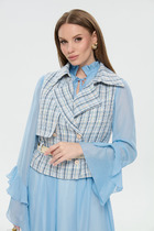 Жилет свободного силуэта с V-образным вырезом и расслабленными приспущенными рукавами.