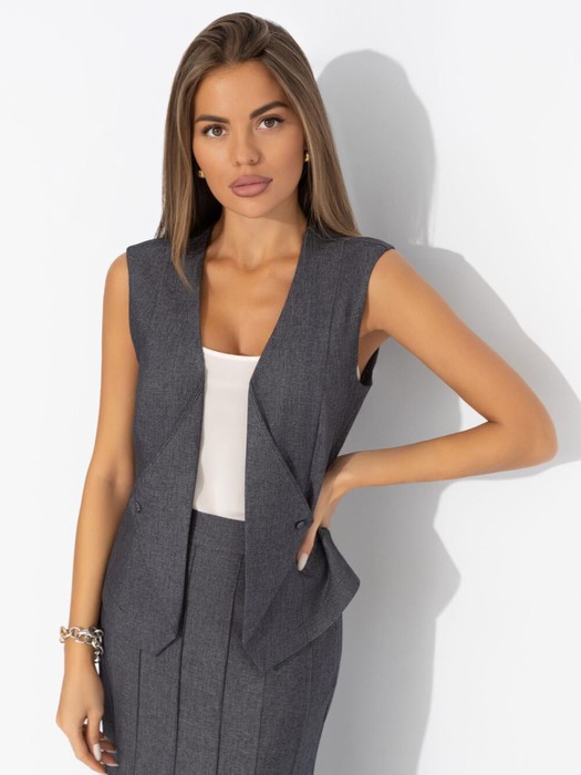 Жилет ЧАРУТТИ она выбрала для первого дня на новой работе. Теперь каждый день – не рутина, а приключение. Жилет стал талисманом – в нем она не просто сменила работу, а научилась доверять себе. Ведь лучшая карьера начинается там, где заканчиваются сомнения. Жилет приталенного силуэта с акцентными отворотами, которые могут быть застегнуты.