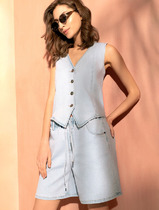 Vilatte Жилет из эластичного денима D57.004 светло-голубой