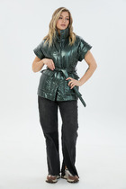Стеганый жилет на утеплителе синтепон 150 гр/м и ветрозащитной подкладке барьер в современном минималистично стиле. Прямой свободный силуэт , разноуровневый низ с мягким закруглением , вертикальная стежка визуально вытягивает фигуру , диогональные линии карманов создают динамику и оригинальность . Мягкий цельнокроеный воротник стойка плавно переходящий в линию борта и потайная застежка на кнопки придают изделию лаконичность и универсальность Модель идеально подходит для создания трендовых классических и спортивных образов.