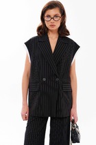 Жилет с воротом стойка выполнен из мягкой пряжи с кашемиром. Модель дополнена боковыми разрезами. Хорошо сочетается лонгсливами и блузками. Мягкая пряжа очень приятная к телу, поддержит комфорт на протяжении всего дня, при этом не перегревая. Сочетается в костюме с брюками D38.013, D38.012 и юбкой D36.016