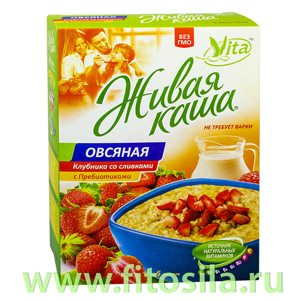 Совместные покупки Симферополь Товары для здоровья Добавки к пище, витамины — Живая каша Овсяная клубника со сливками с витаминами и пребиотиками, 210 г, ТМ "