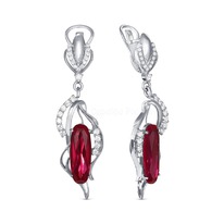 Серьги из серебра с синтетическим рубином и фианитами родированные