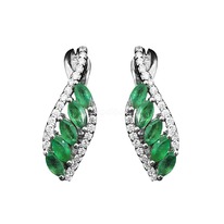 Серьги из серебра с натуральным изумрудом и кубическим цирконием родированные