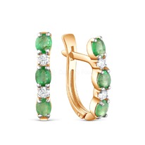 Серьги из золочёного серебра с изумрудом, фианитами и родированием