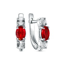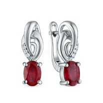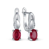 Серьги из серебра с рубином и кубическим цирконием родированные