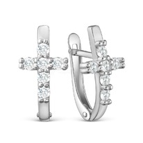 Серьги из серебра с фианитами родированные