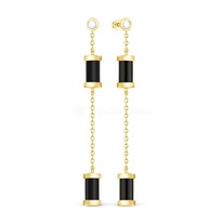 серьги длинные в форме клевер гвоздики из серебра с камнем оникс коллекция Clove
