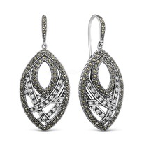 Серьги из чернёного серебра с горным хрусталём и марказитами