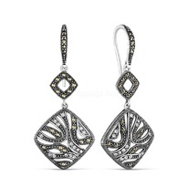 Серьги из чернёного серебра с нат.белым перламутром и марказитами