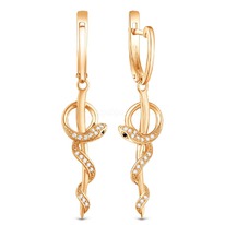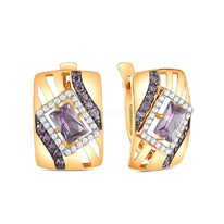 Серьги-продёвки из золочёного серебра с фианитами и родированием