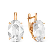 Серьги из золочёного серебра с пл.кварцем цв.лунный камень и фианитами