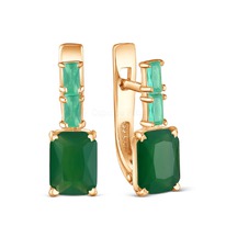 Серьги женские из золочёного серебра с натуральным зелёным агатом и плавленым кв