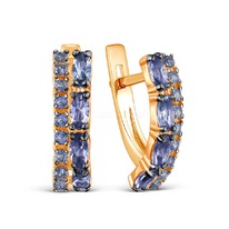 Серьги из золочёного серебра с плавленым кварцем цвета танзанита и родированием
