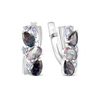 Серьги из серебра с натуральным агатом и фианитами родированные 2-4207р40900