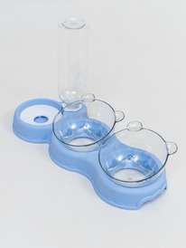 Двойная миска с поилкой голубая