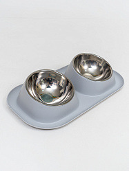 Двойная миска с металлическими чашками серая