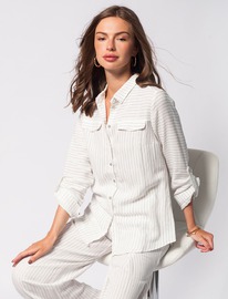 АКЦИЯ Черная ПятницаБлузка с высоким манжетом из вискозы в рубчик