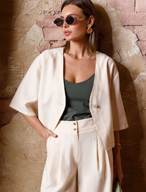 Блузка из плотного полуматового сатина с удлиненным манжетом