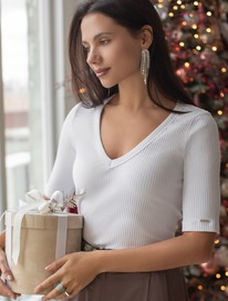 Джемпер с V вырезом и коротким рукавом из хлопковой пряжи с пайетками