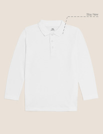 marksandspencer Unisex Long Sleeve Polo Shirt (2-16 Yrs) White РЯД