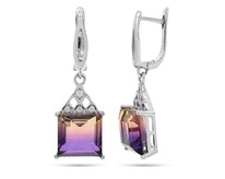 Серьги из серебра с пл.кварцем цв.морганит и фианитами родированные 925 пробы 2-