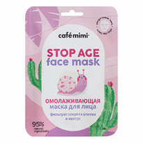 CAFE MIMI Маска тканевая д/лица Омолаживающая Фильтрат секрета улитки+Кактус