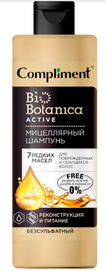 COMPLIMENT Biobotanica active 7 редких масел Шампунь д/секущихся волос Реконстр.