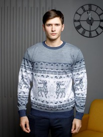 ESENIA Кардиган мужской полушерстяной Толстой вязки на короткой молнии - Джинс