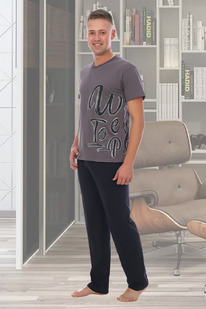 Спортивный костюм М-1831: Тёмно-синий / Серый меланж
