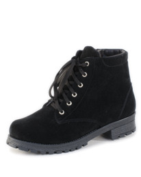 А501.03 Ботинки женские на литой подошве черные, замша, молния, шнуровка