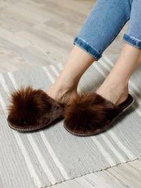 ESENIA Тапочки домашние женские из мутона с помпоном - Коричневый