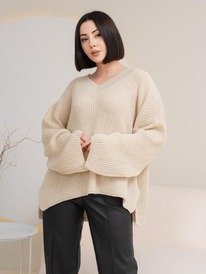 ESENIA Джемпер женский молодёжный с удлиненной спинкой оверсайз - Бежевый
