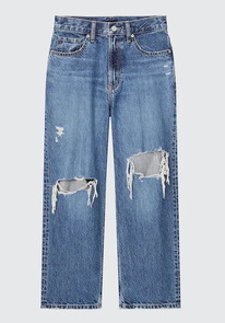 UNIQLO UK LOOSE CROPPED FIT DISTRESSED JEANS BLUE темн.