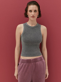 TO061 Топ без рукавов с воротом из микрофибры в рубчик