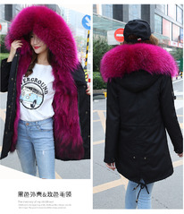 Лайнер из меха лисы воротник - мех енота, цвета в ассортименте
