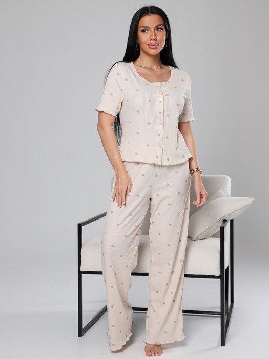 Заказать 757 Домашний костюм брюки МЯТНЫЙ сердечки