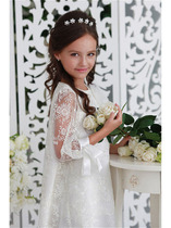 Очаровательное нарядное платье-трапеция для девочек. Верхний слой лифа и рукава выполнены из прозрачной сетки с нарядной цветочной вышивкой. Застежка пуговица на спинке. Манжеты на рукавах украшены атласными бантиками в тон изделия. Платье украшено воздушным цветком, что завершает великолепный образ.