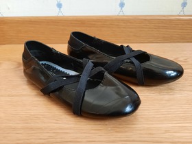 Б/У, балетки известного английского бренда George, Girls Black Ballerina Shoes. Симпатичные балетки из черной лакированной кожи с эластичными ремешками через стопу. Кожаная подкладка, тканевые стельки и рифленая подошва. Нескользящая подошва: гибкая и прочная резиновая подошва для балеток, чтобы хорошо защитить вашего малыша, когда она гуляет, танцует или бегает. Балетки идеально подходят как для элегантной, так и для повседневной одежды. Цвет: Black. Состав: искусственная лакированная кожа 100%, подошва резина 100%, подкладка натуральная кожа 100%. Размер: 9 UK, 27 EU, 26 наш, длина по стельке 16,5 см, длина стопы 16 см. Без коробки. Состояние: б/у, хорошее.