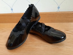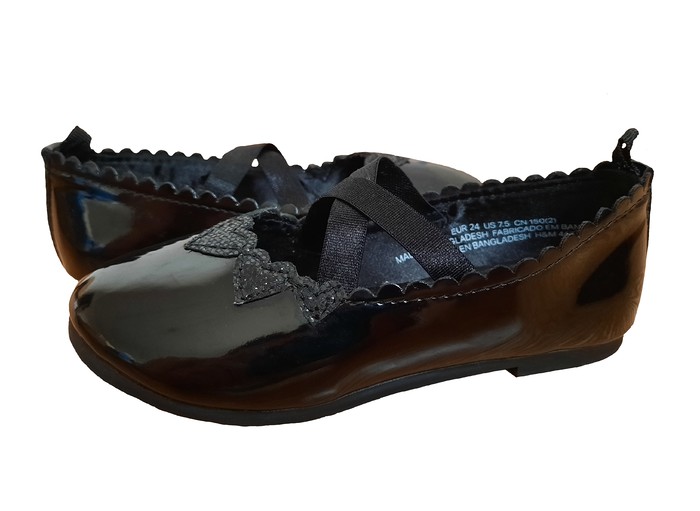 Б/У, балетки известного шведского бренда H&M, kids Ballet Flats. Симпатичные балетки из черной лакированной кожи с эластичным ремешком через стопу, с аппликациями в виде сердечек спереди. Тканевая подкладка, тканевые стельки и рифленая подошва. Нескользящая подошва: гибкая и прочная резиновая подошва для балеток, чтобы хорошо защитить вашего малыша, когда она гуляет, танцует или бегает. Балетки подходят для любого особого случая, свадьбы, туфель для девочек-цветочниц, формальных костюмов, костюмов принцессы, повседневной жизни, вечеринок, выступлений, Хэллоуина и других нарядов. Цвет: Black/patent. Состав: искусственная лакированная кожа 100%, термопластичный каучук 100%, подкладка 100% полиэстер. Размер: 24 наш, длина по стельке 14,5 см, длина стопы 15 см. Без коробки. Состояние: б/у, отличное.