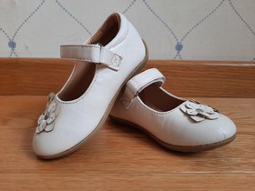 Б/У, балетки известного английского бренда Mothercare, White Flower Ballerina Shoes. Для маленьких девочек с танцующими ножками эти симпатичные балетки созданы для кружения! Эти туфли белого цвета с переливающимися цветочными деталями добавят волшебную завершенность особым нарядам. Ремешок для ног с липучкой защищает их, потому что мы знаем, насколько загруженными могут быть маленькие ножки. Туфельки в стиле балерины, ремешок с липучкой для комфортной посадки, мерцающие цветочки, нескользящая подошва. Нескользящая подошва: гибкая и прочная резиновая подошва для балеток, чтобы хорошо защитить вашего малыша, когда она гуляет, танцует или бегает. Балетки подходят для любого особого случая, свадьбы, туфель для девочек-цветочниц, формальных костюмов, костюмов принцессы, повседневной жизни, вечеринок, выступлений и других нарядов. Цвет: White. Состав: искусственная лакированная кожа 100%, термопластичный каучук 100%, подкладка искусственная и натуральная кожа. Размер: 4 UK, 20 наш, длина по стельке 13 см, длина стопы 12,5 см. Без коробки. Состояние: б/у, отличное.