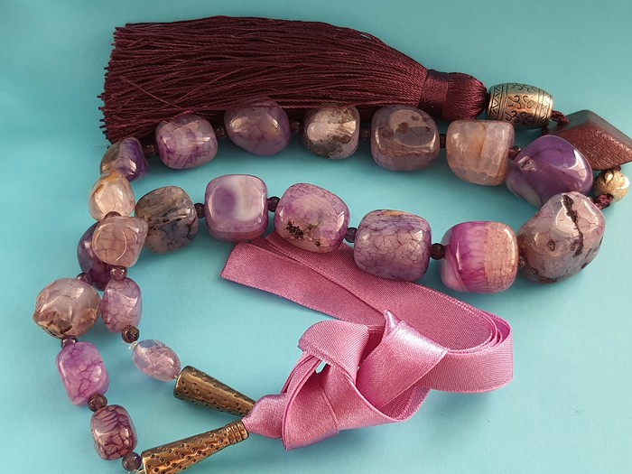 оригинальные бусы из крупных натуральных камней аметиста и чароита