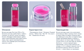 Бутылка изготовлена из современного и безопасного материала, который не выделяет посторонних запахов.
