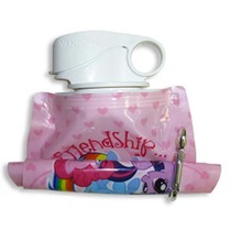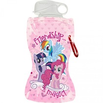 Новая бутылочка для питья Hasbro My Little Pony Friendship Is Magic Collapsible Water Bottle с карабином. На складной бутылке с водой изображены «Радужный рывок», «Сумеречная искорка» и Пинки Пай среди слов «Дружба… это волшебство!» Имеет широкую горловину для легкого заполнения, стоит когда полностью наполнена, складывается или сплющивается когда пустая, можно замораживать на ночь, в комплекте клип карабин который можно прикрепить к рюкзакам, спортивным сумкам и т. д. поэтому вы не потеряете его. Не содержит BPA и безопасна, можно мыть в посудомоечной машине. Этот складной флакон с прохладным розовым рисунком с сердечками, цветами и звездами отлично подойдет любителям My Little Pony: Friendship is Magic! Объем: 12 унций, 350 мл.